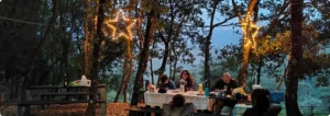Al centro dell’area campeggio, in prossimità di un’antica fornace per la produzione di manufatti in argilla, è allestito uno spazio comune per il ristoro e la socializzazione, attrezzato con punto fuoco, barbecue, stufa rocket, cucinino, frigo, area relax arredata.